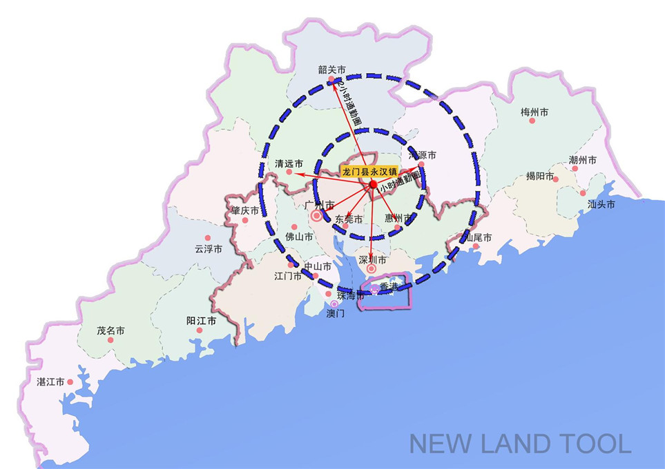 永汉位于珠江三角洲的北部边缘,是龙门县、博罗县、增城市和从化市四县市地理中心,为龙门县的南大门。独拥“千峰环野立,三水抱城流”、“八山一水一分田”的绿谷小平原。规划基于以下三个重点问题的思考把握地区发展方向,并提出发展策略。